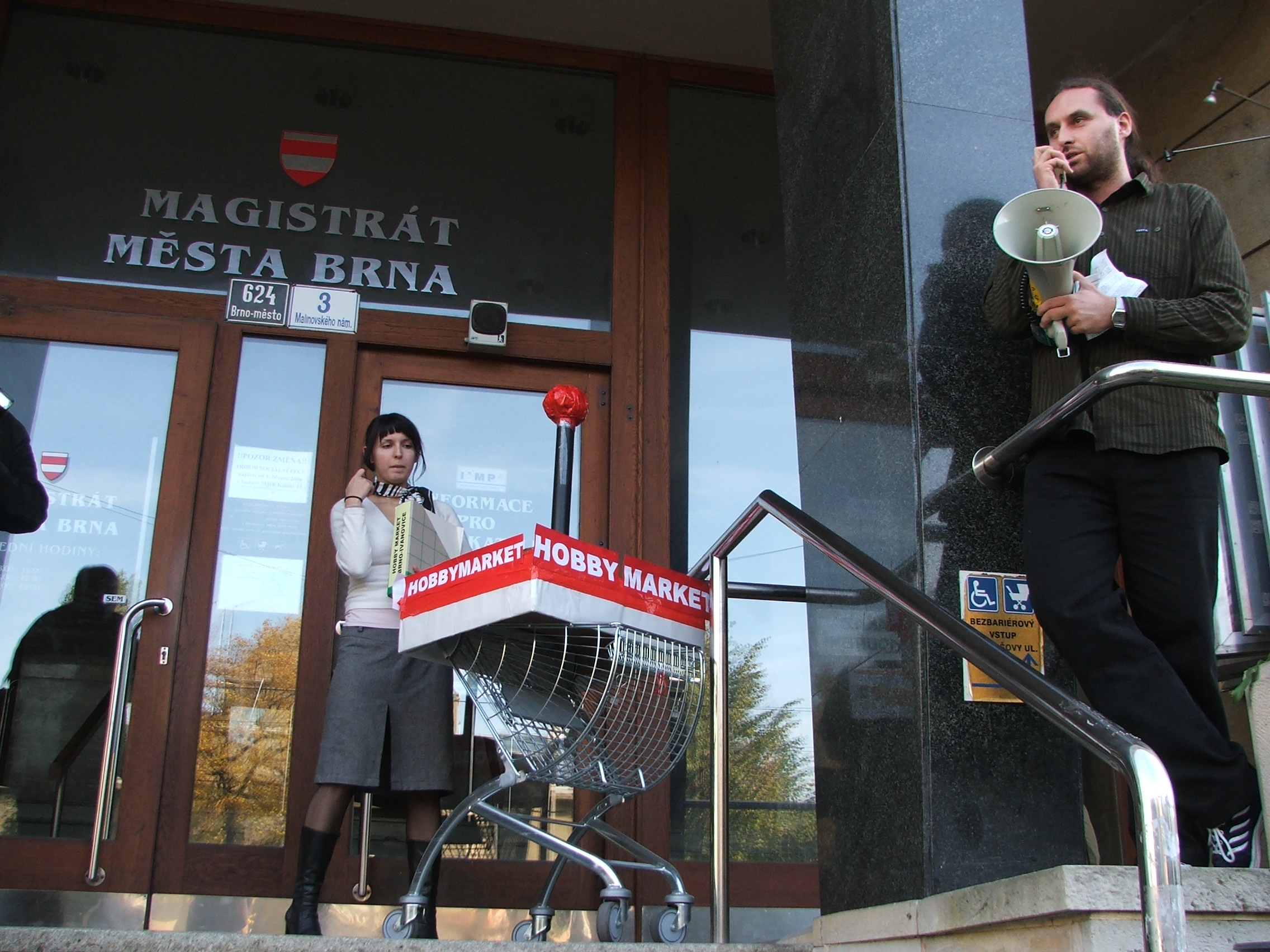 Úspěšně zasahujeme proti ilegálně sjednané výstavbě obřího hobbymarketu v Brně – Ivanovicích. Také provádíme výzkum dopadu expanze hypermarketů na životní prostředí v ČR.